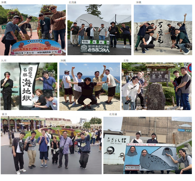 各 6名ほどのグループになり、 2025年は国内中心の社員旅行となりました。